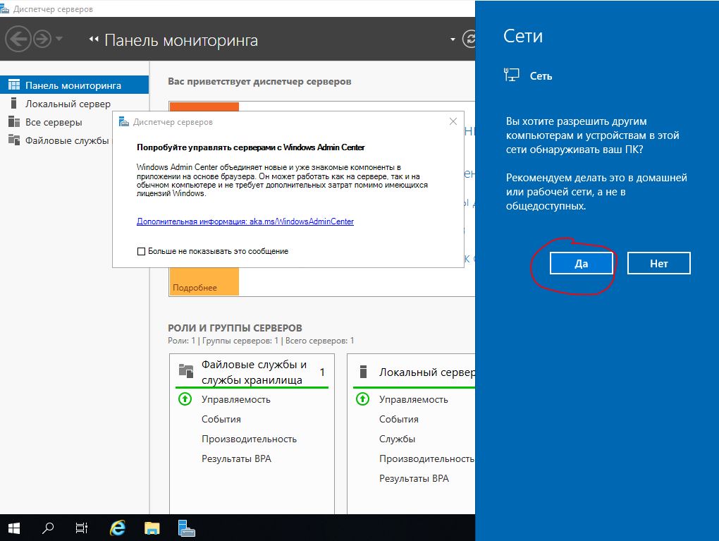 5. Включаем компьютер, входим в систему, при первом запуске спросит про сети, отвечаем «Да»